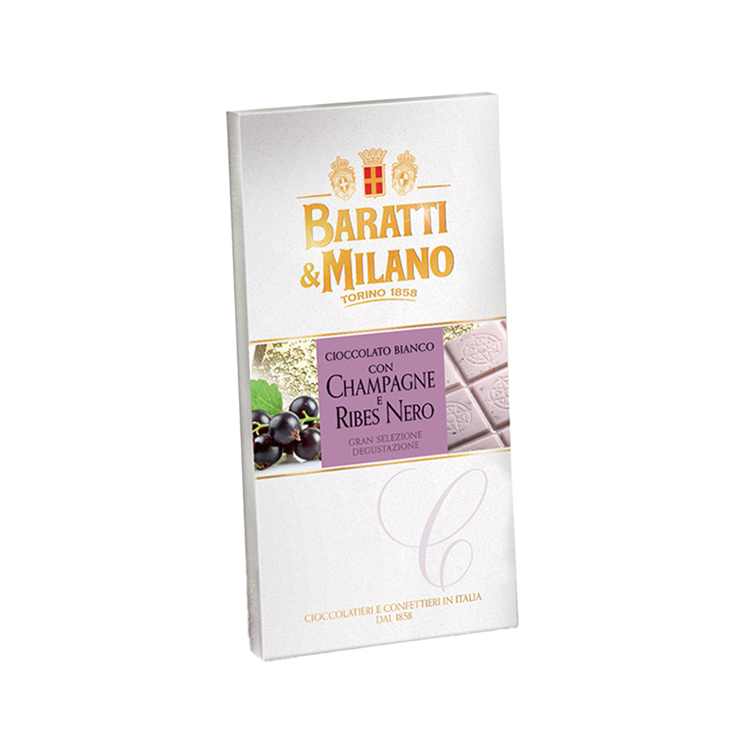 White chocolate with champagne and blackcurrant, a sophisticated and indulgent pairing.