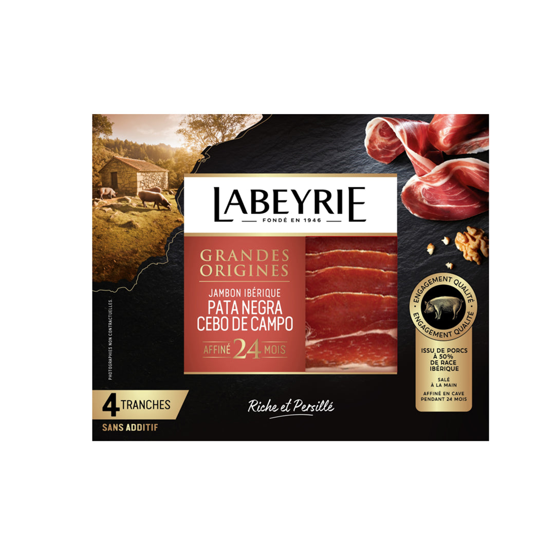 From free-range Iberian pigs and aged for 24 months, this exceptional ham delivers deep, nutty flavors and silky texture—an elegant expression of Spanish charcuterie mastery.