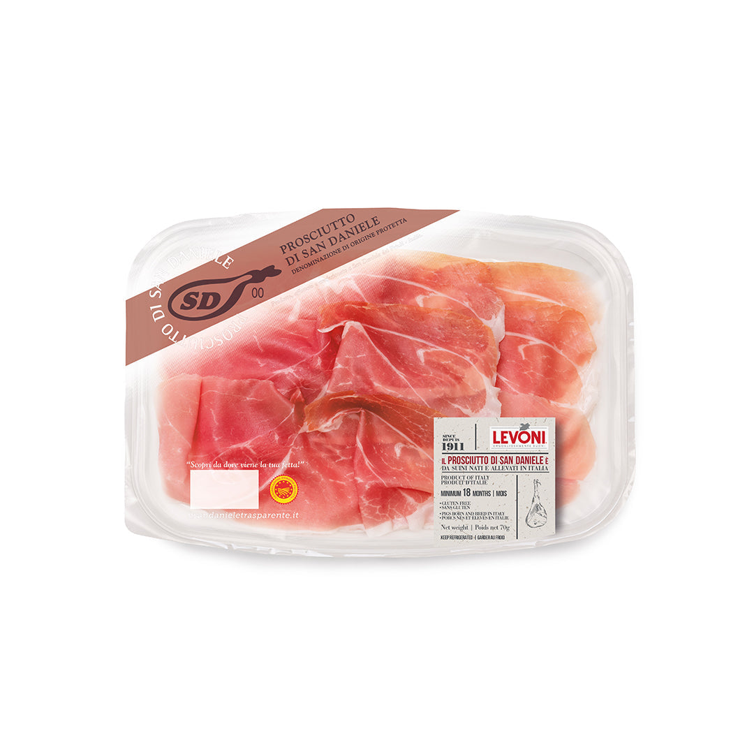 Traditional Prosciutto San Daniele, slow-cured for exceptional sweetness and aroma. Soft, refined, and authentically Italian.