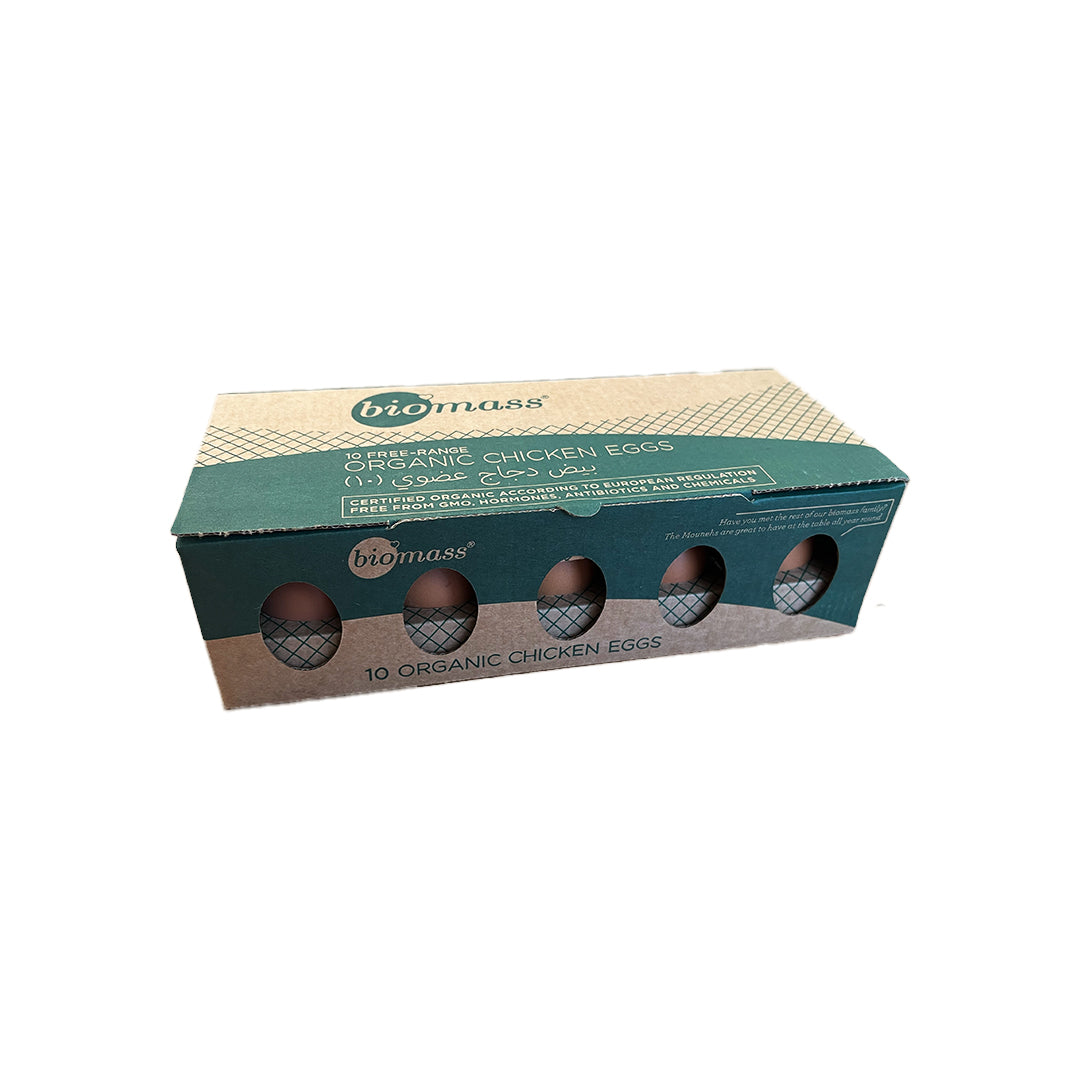 Rich and flavorful large brown eggs from certified organic hens, perfect for cooking or baking.
