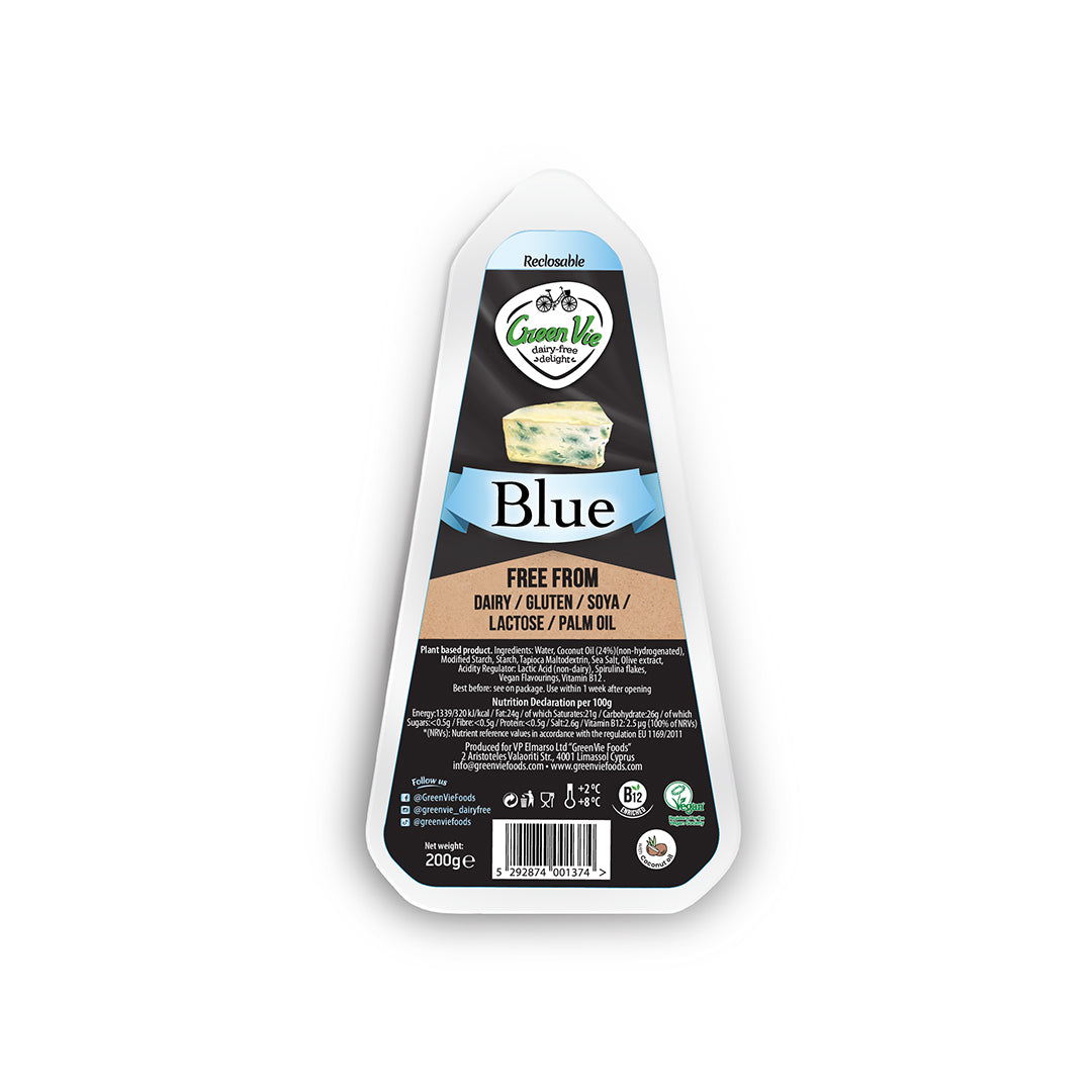 A bold, plant-based take on classic blue cheese, offering a tangy and rich flavor. Perfect for cheese boards, adding to dressings, or crumbling over salads for an intense taste experience.